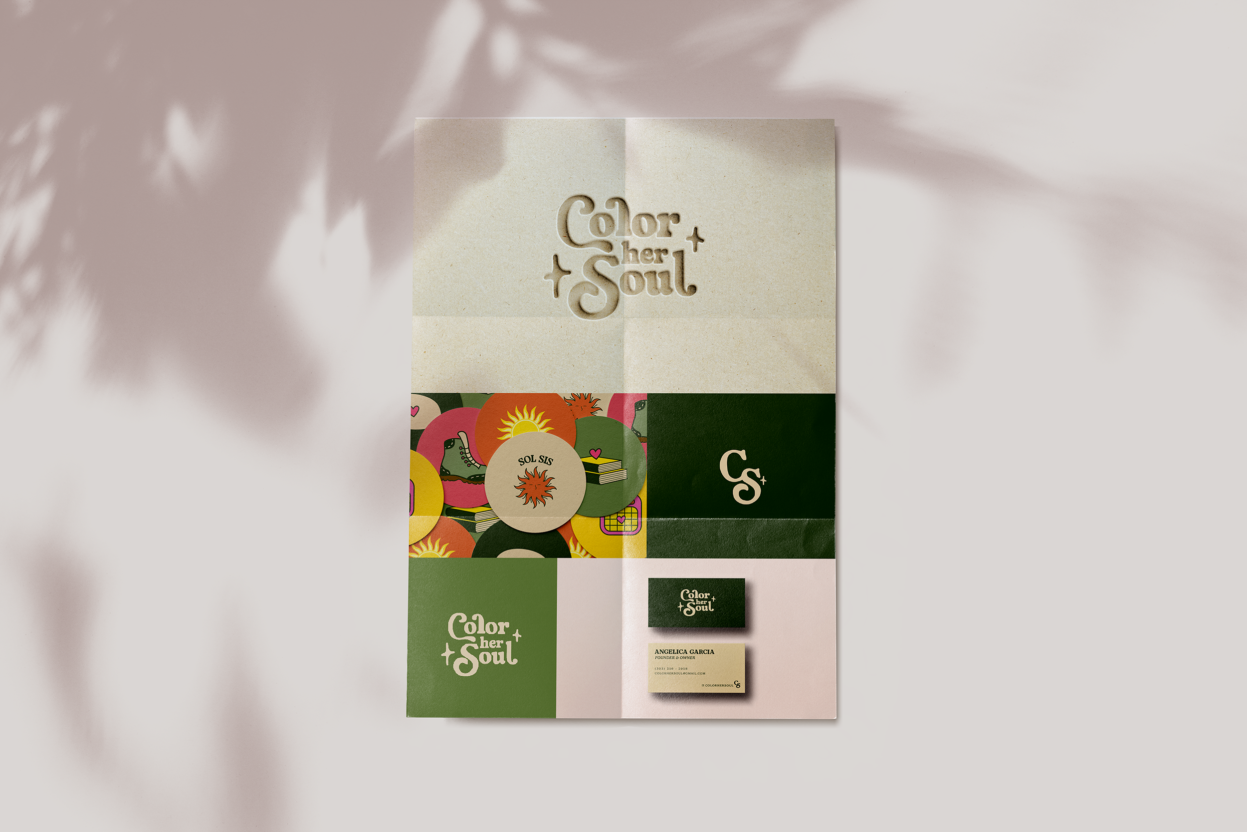 Color Her Soul is a community built for women of color. They host events, classes, and meet ups throughout denver. The inspiration was feminine and soft with a modern kick. The custom type for the cluster logo creates a sense of warmth and community closeness, emphasizing those traits found in the business. The colors contain comforting earth tones contrasted with a vibrant pink, creating a fun dynamic betweenn the two.